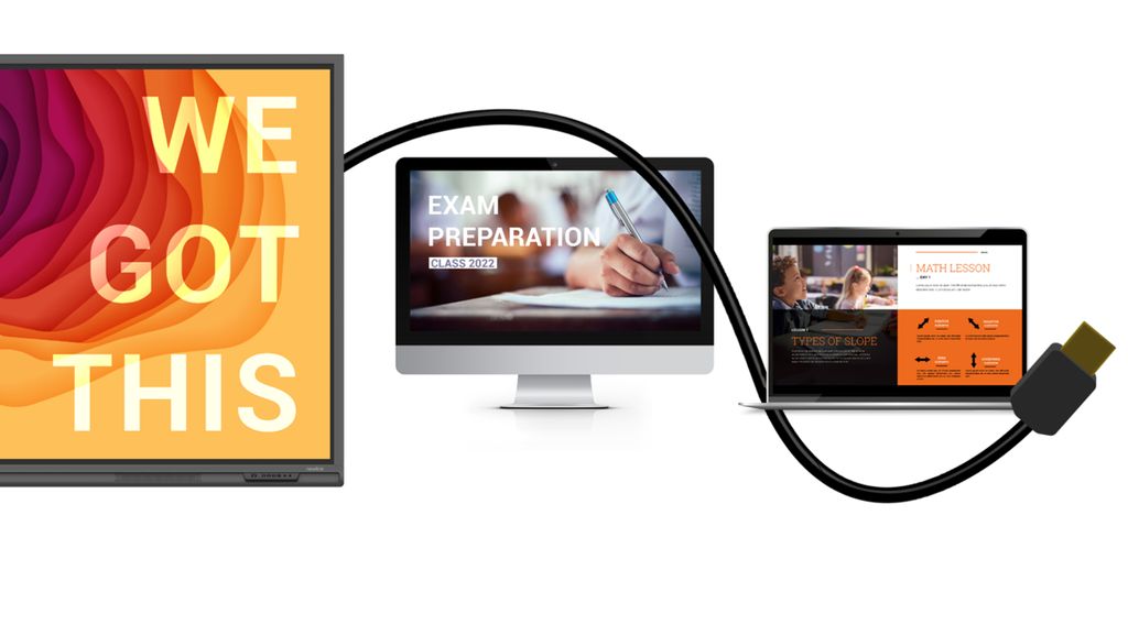 Одной из особенностей интерактивных дисплеев Newline серии QAS является HDMI-выход, работающий как коммутатор. Иными словами, так же как и с Newline Broadcast, абсолютно всё, что мы видим и делаем на экране панели, может быть протранслировано на HDMI-матрицу, проектор, огромную видеостену или в систему ВКС стандартными средствами панели, но уже не по сети, а через HDMI-кабель. Не важно в помещении какого размера мы работаем, с какого источника выводим сигнал на панель, будь-то встроенный Андроид, встраиваемый OPS, внешние ноутбуки или смартфоны, транслирующие сигнал без проводов –ваша аудитория увидит абсолютно всё.