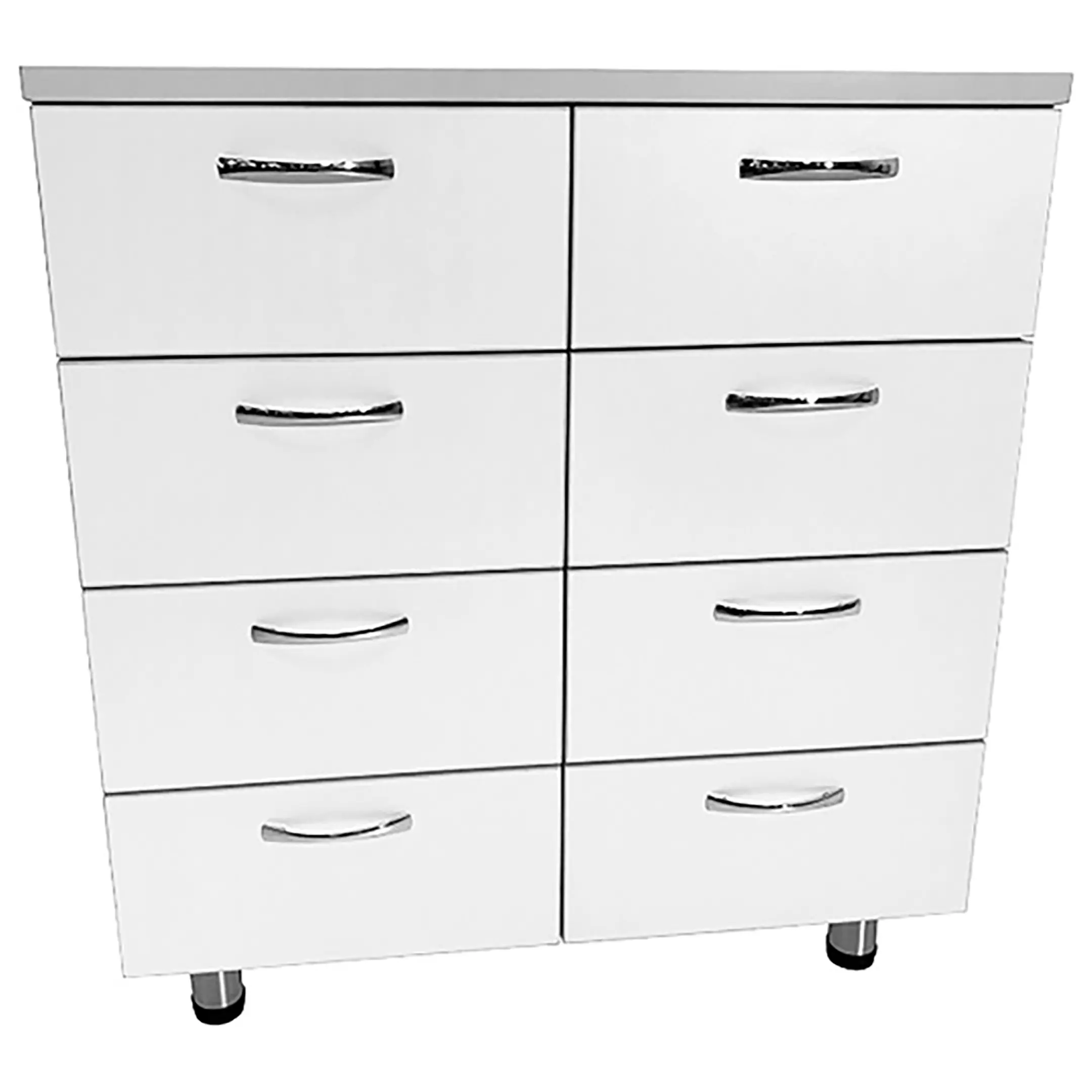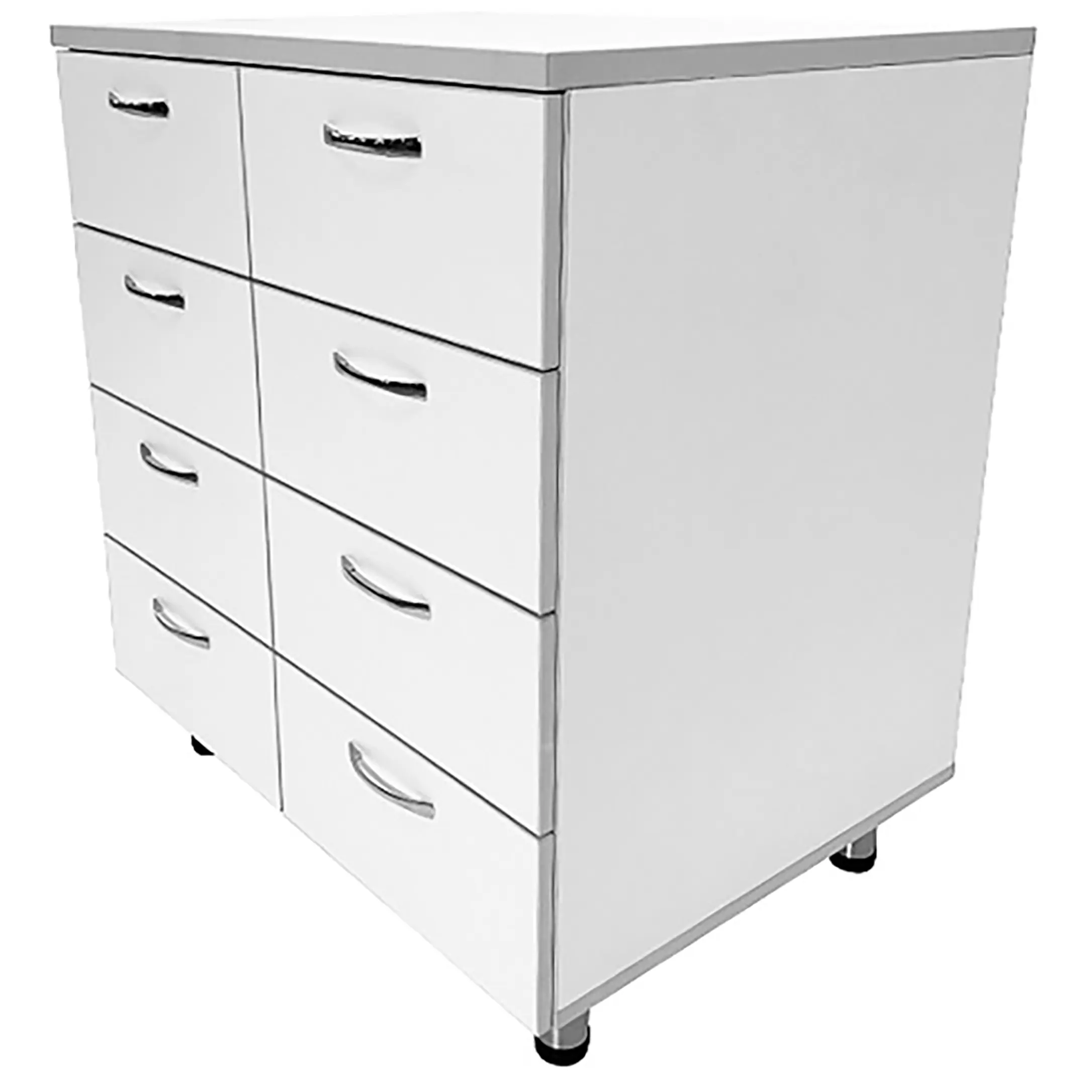 • В тумбе под столешницей предусмотрено 8 выдвижных ящиков, что обеспечивает удобное и компактное хранение различного медицинского оборудования.