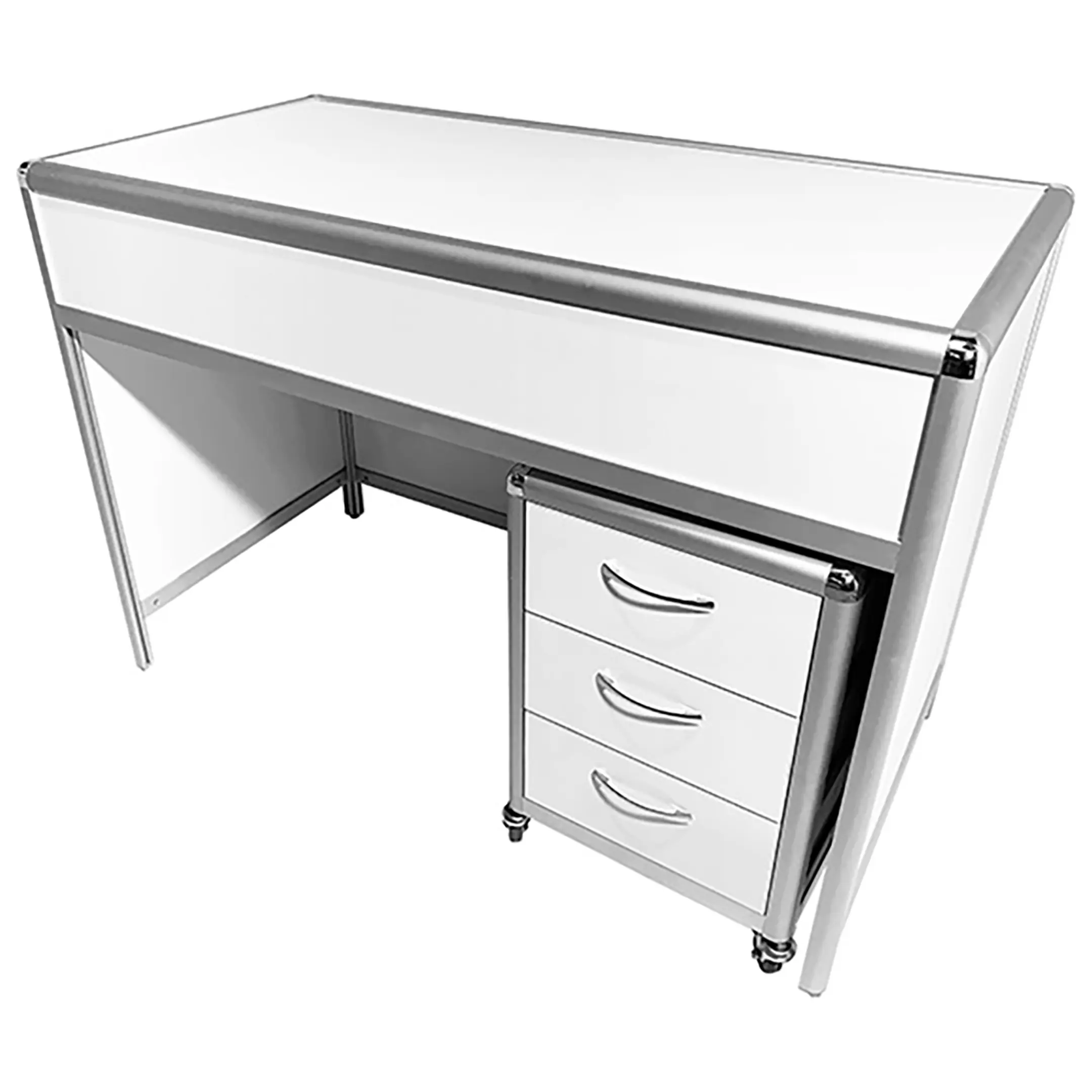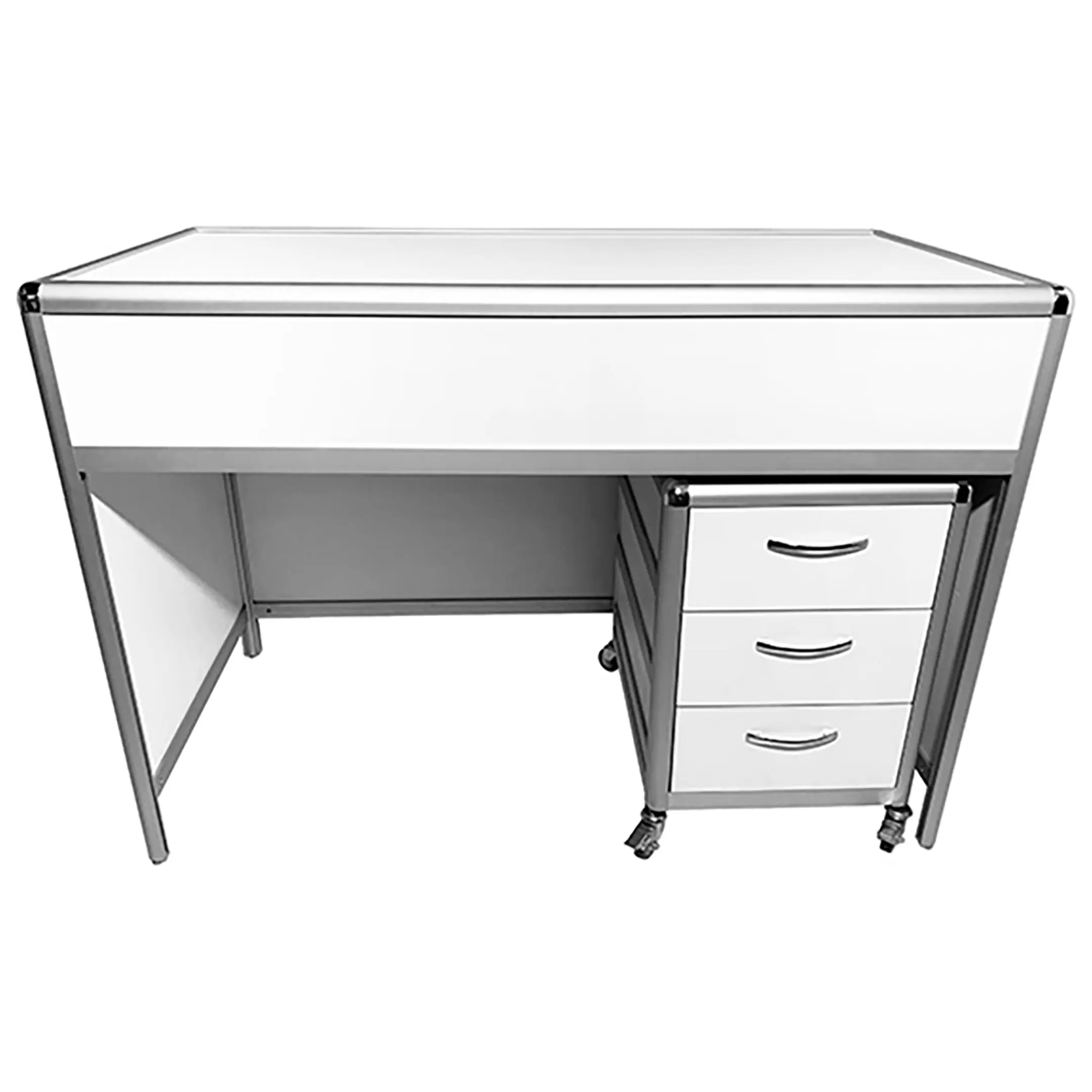 Стол лабораторный MED 10.014al (белый) — это удобное и практичное решение для создания эффективного и организованного рабочего места сотрудников в лабораториях и медицинских учреждениях. Модель оснащена подкатной тумбой на колесиках с тремя выдвижными ящиками. Каркас выполнен из алюминиевого профиля, столешница из ЛДСП толщиной 16 мм.