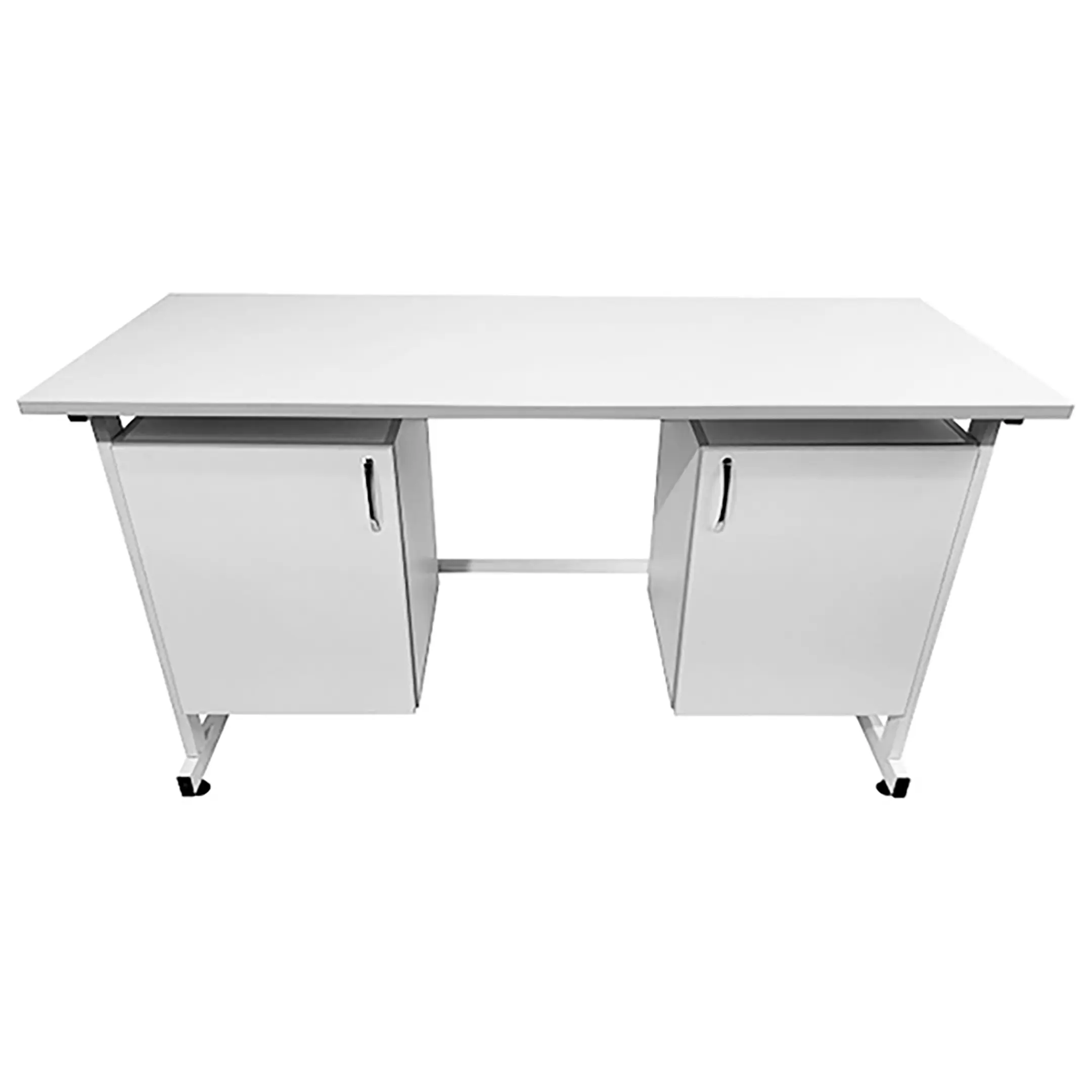 Стол лабораторный СЛ 12.005 (белый) — это функциональное и элегантное решение для организации рабочего места сотрудников в лабораториях. Модель оснащена двумя подвесными тумбами с распашными дверками и полками внутри. Каркас выполнен из стального профиля, столешница из ЛДСП толщиной 22 мм.