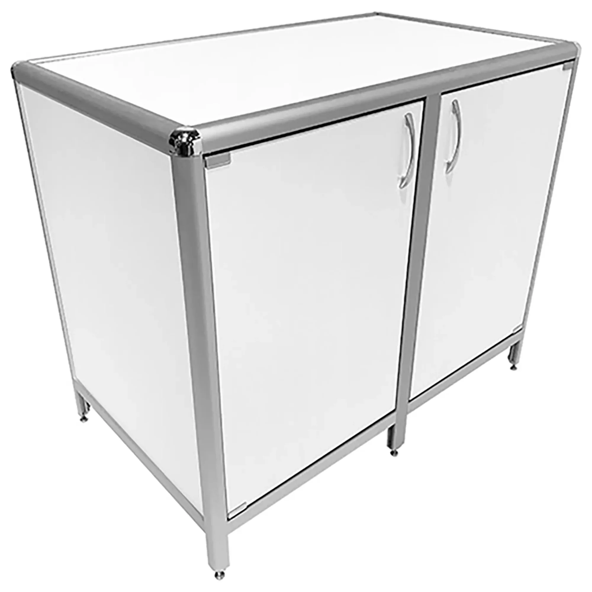 Стол-тумба лабораторная MED 12.011al (белый) — это функциональное решение для хранения лабораторного инвентаря, приборов и материалов в лабораториях и медицинских учреждениях. Модель оснащена двумя тумбами с распашными дверками и полками внутри (полки 463х545 мм). Каркас выполнен из алюминиевого профиля, столешница из ЛДСП толщиной 16 мм.