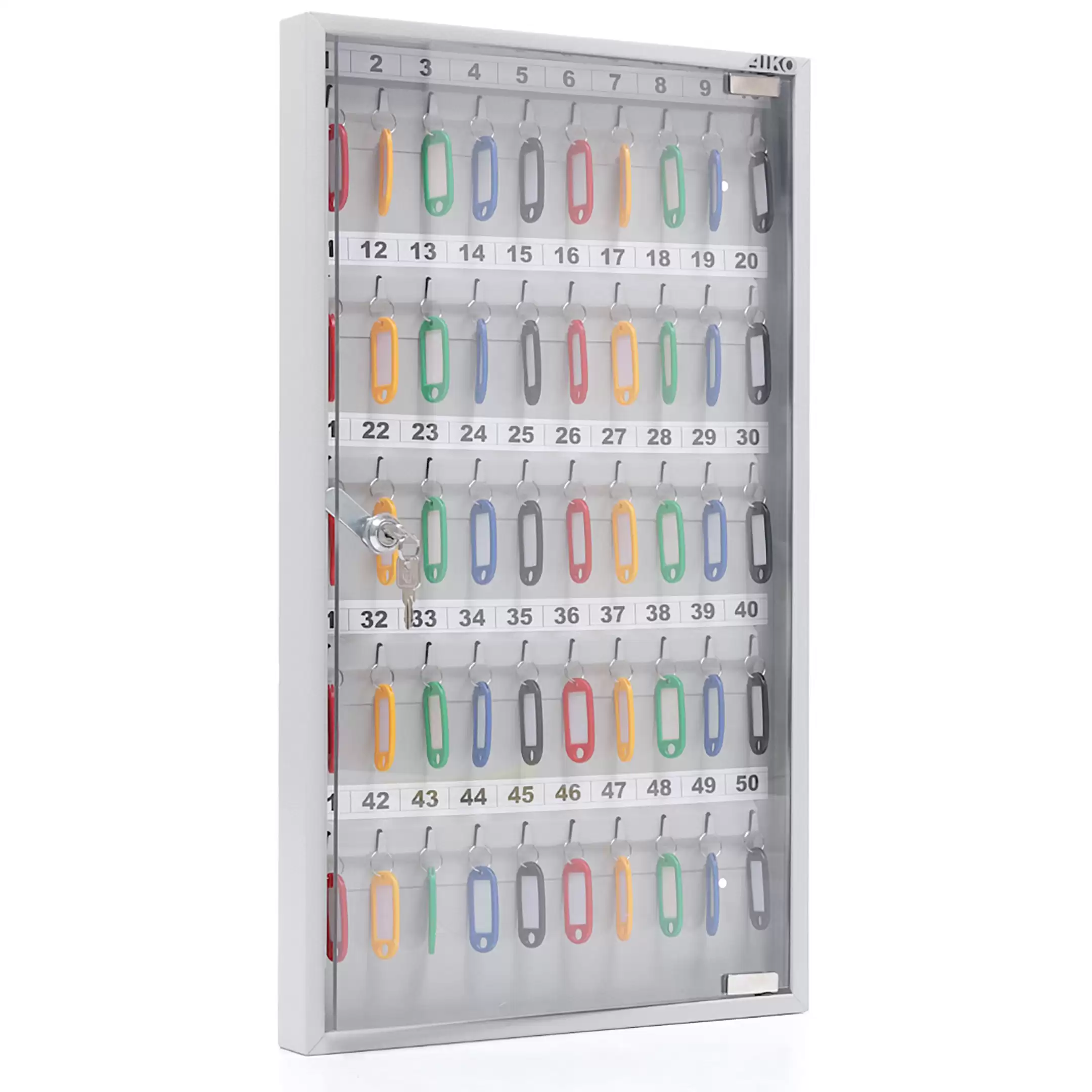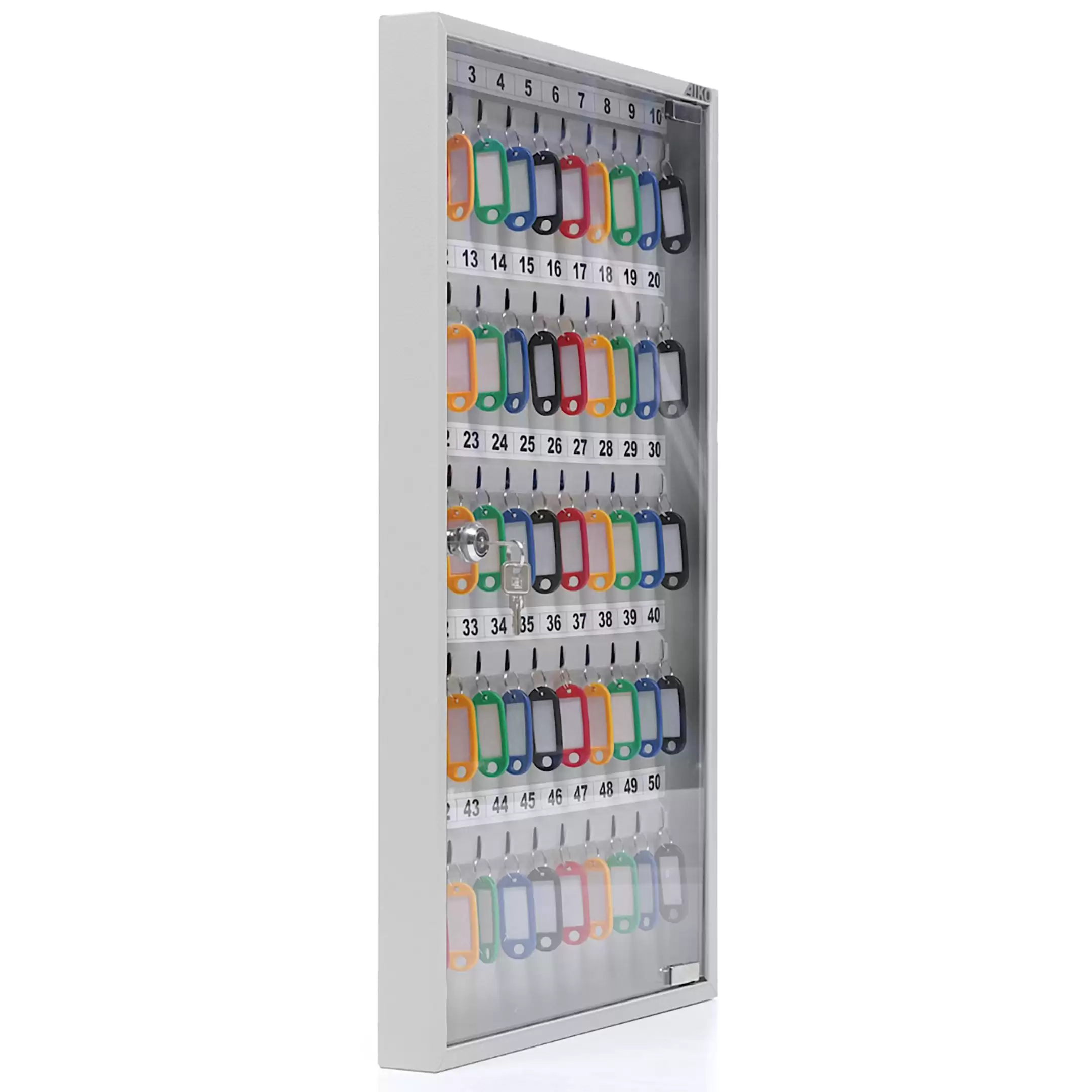 - Оптимальная вместимость для рабочих мест и точек доступа — система рассчитана на 50 ключей, что идеально подходит для организации хранения на стойке администратора, в диспетчерской, на посту охраны или в отделе, где требуется систематизировать и контролировать значительный набор ключей.
