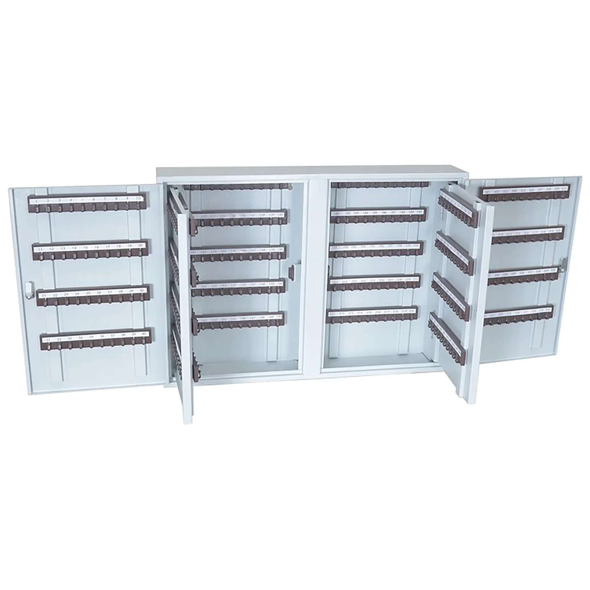 - Экстремальная вместимость для управления ключами мега-объекта — ключница рассчитана на хранение 340 ключей, что делает её решением для крупнейших объектов инфраструктуры: металлургических комбинатов, нефтеперерабатывающих заводов, аэропортов, портов или сетей федерального масштаба. Она позволяет централизованно контролировать доступ к тысячам помещений, единиц техники и спецоборудования.