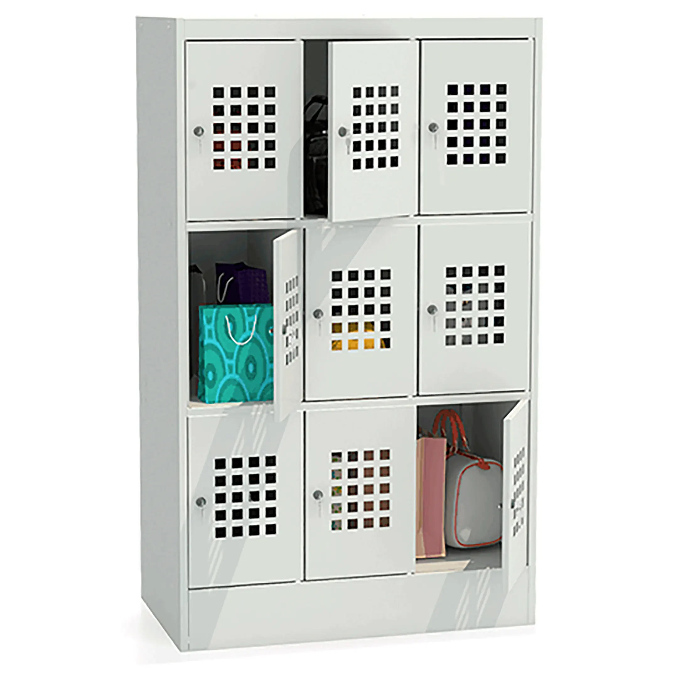 - Компактность при высокой вместимости — шкаф занимает минимальную площадь и при этом предоставляет девять полноценных ячеек для хранения.