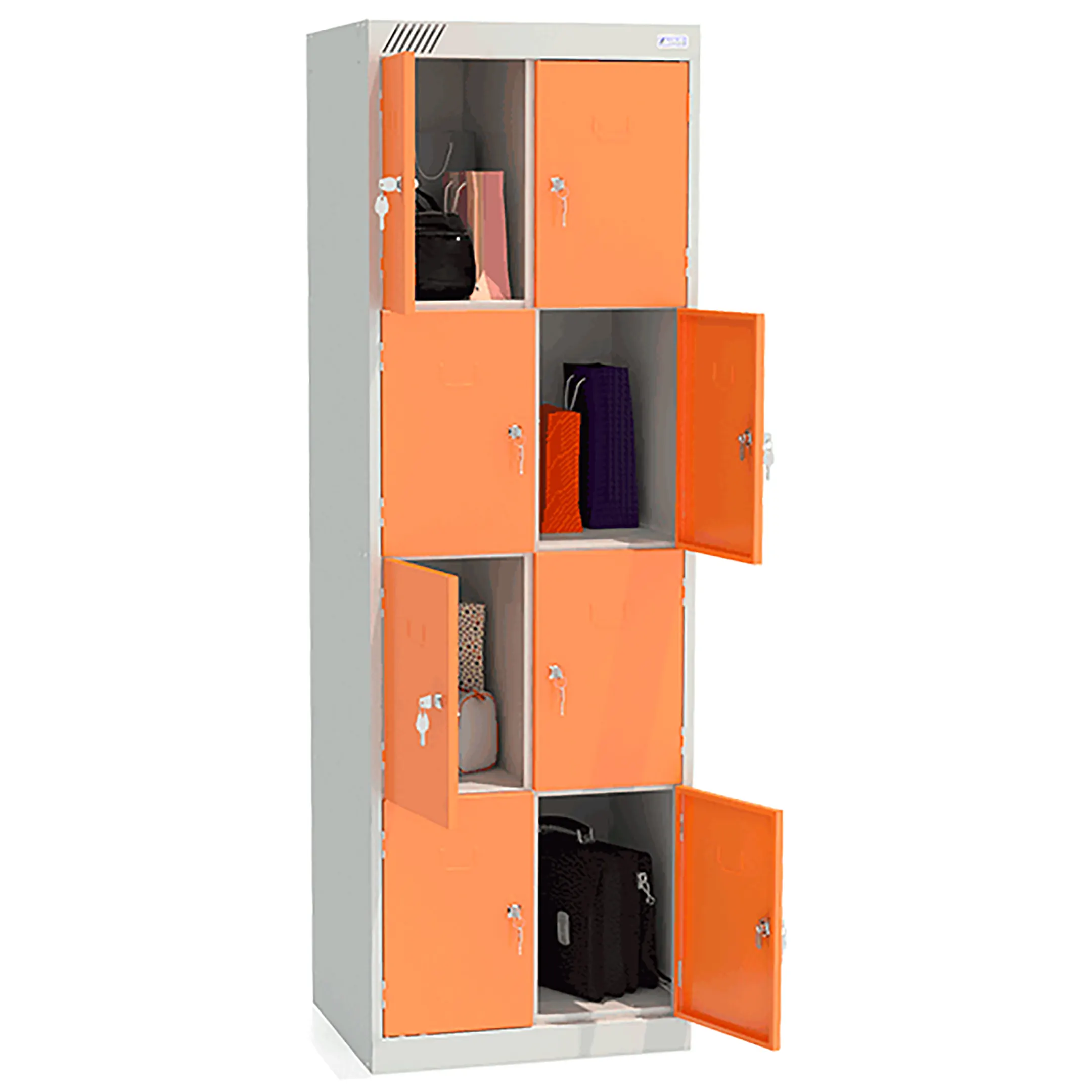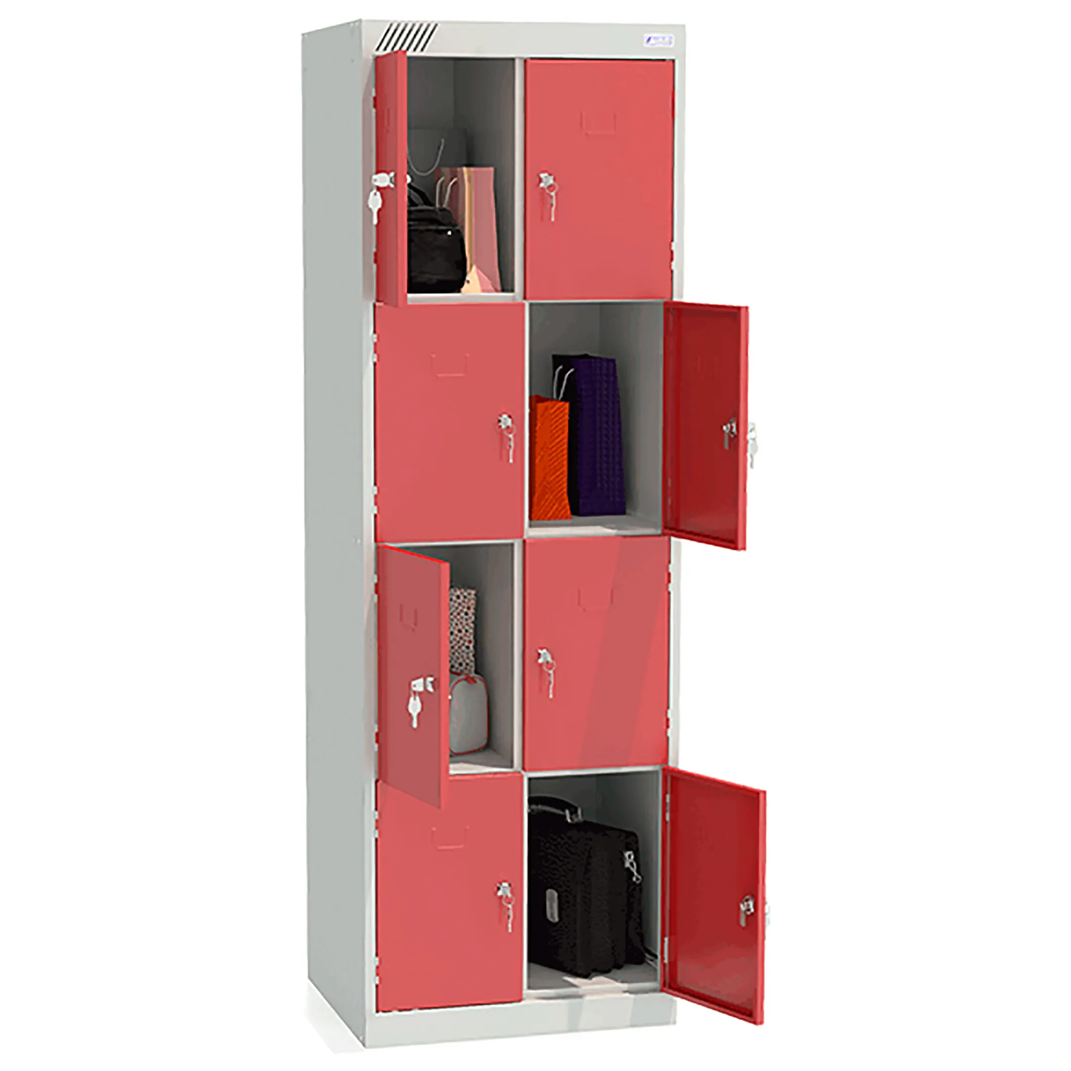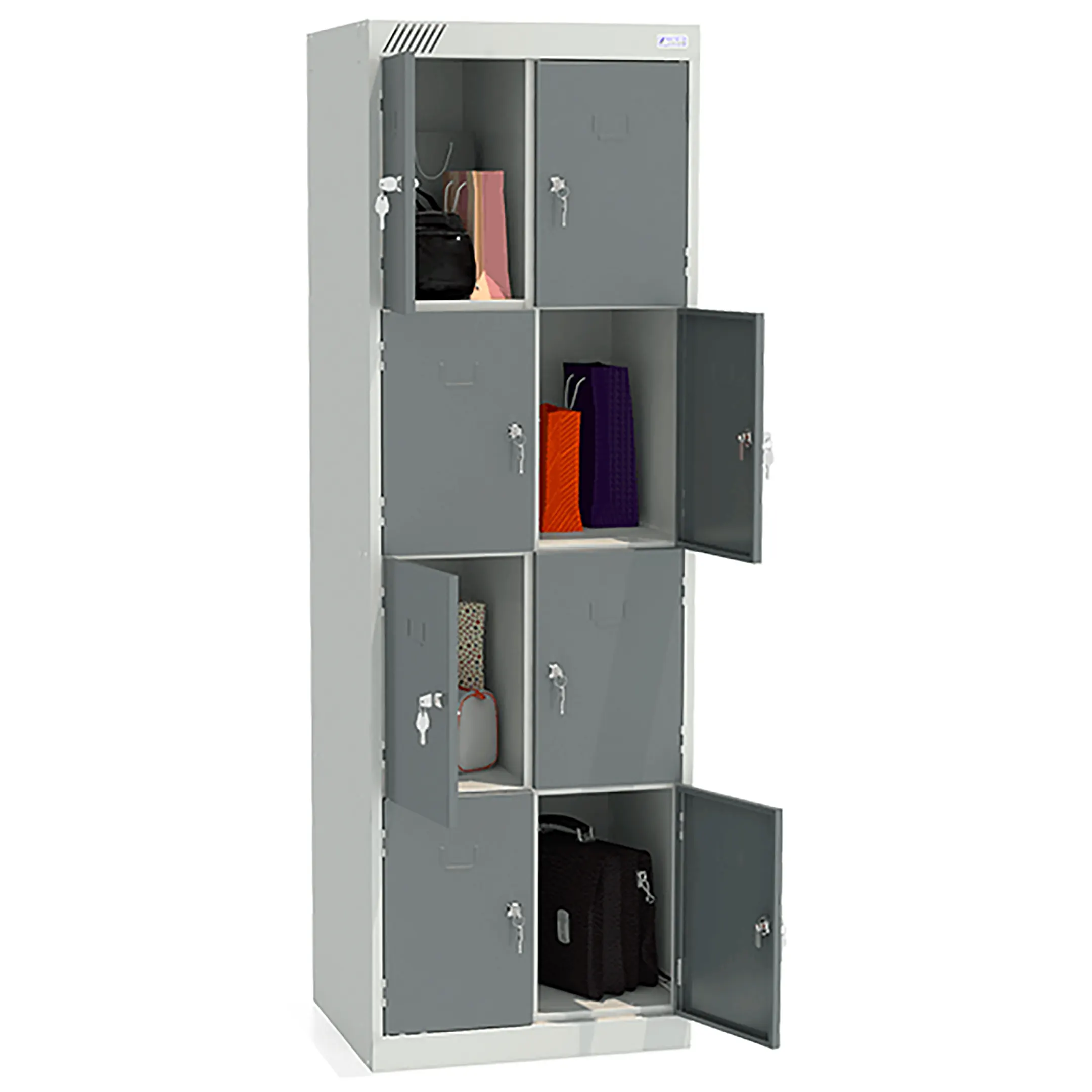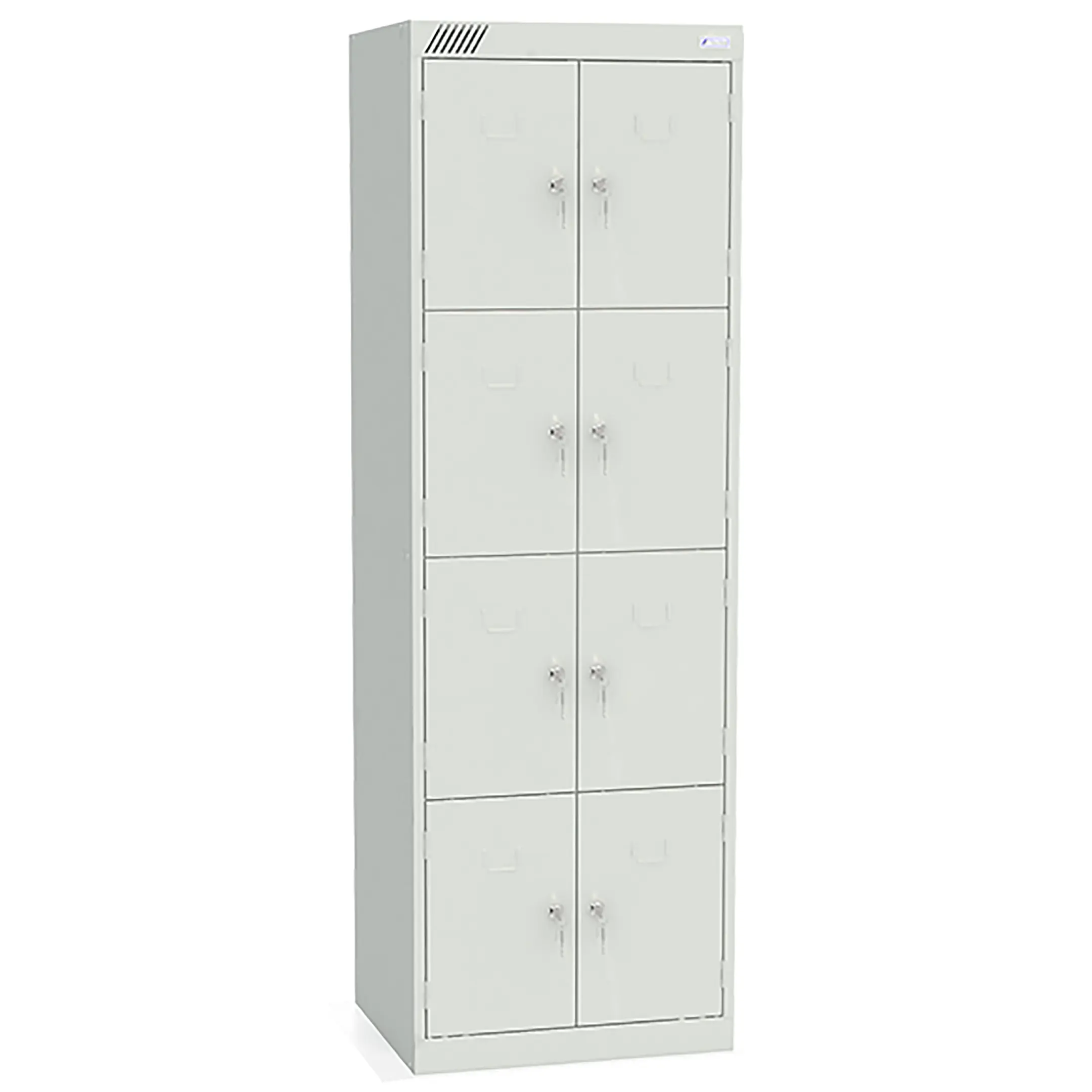 - Вместительная конструкция — две секции и восемь ячеек обеспечивают индивидуальное хранение для нескольких человек.
