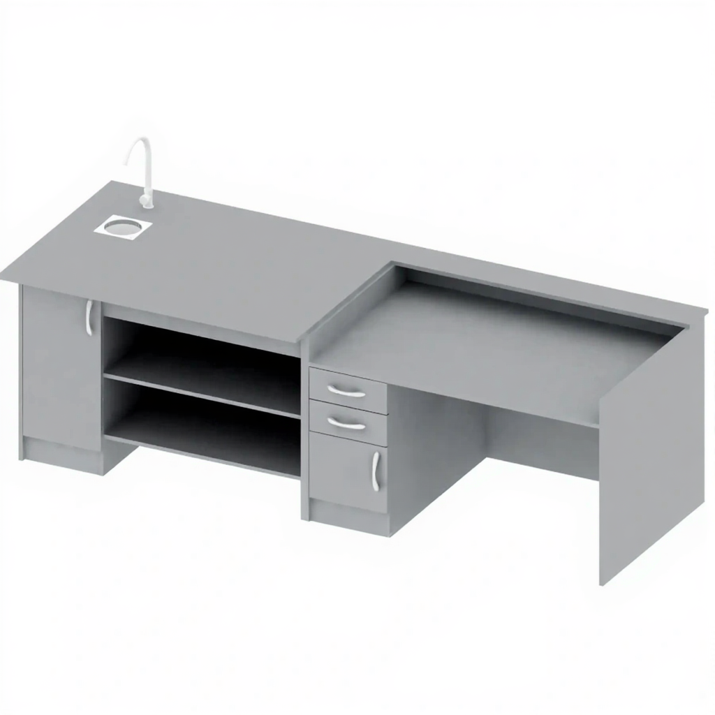Стол учительский с кафедрой и мойкой ПР-ТР-82, Серый — это многофункциональное профессиональное рабочее место для организации комфортного пространства преподавателя в учебных заведениях, особенно в кабинетах химии, биологии и других естественнонаучных дисциплин. Модель сочетает в себе просторную рабочую поверхность, интегрированную кафедру для демонстраций и практических работ, а также встроенную мойку для проведения лабораторных занятий. Сдержанный серый цвет создает современный и технологичный внешний вид, идеально подходящий для научных лабораторий и учебных помещений.