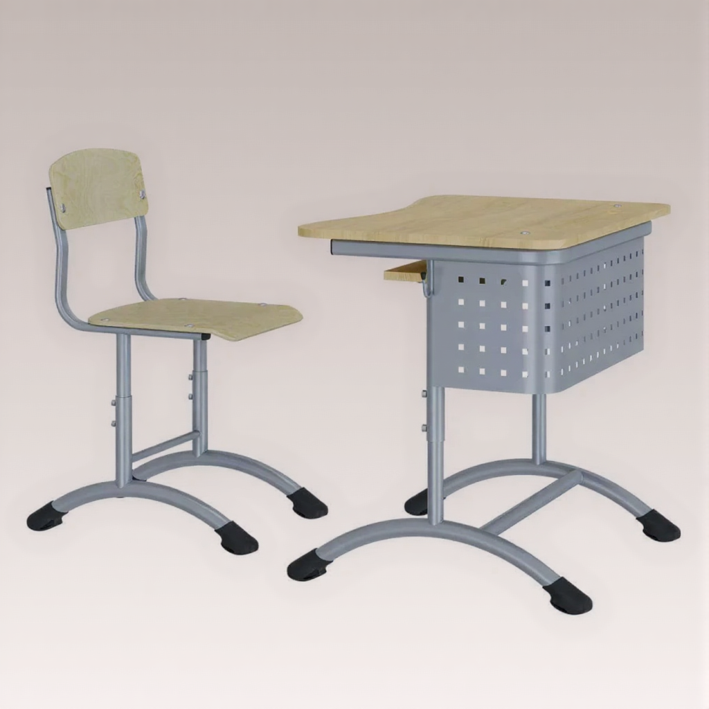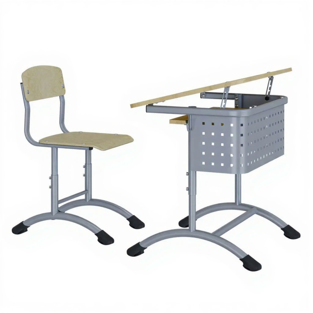 • Регулируемая высота — стул можно легко подстроить под рост ученика и высоту парты.