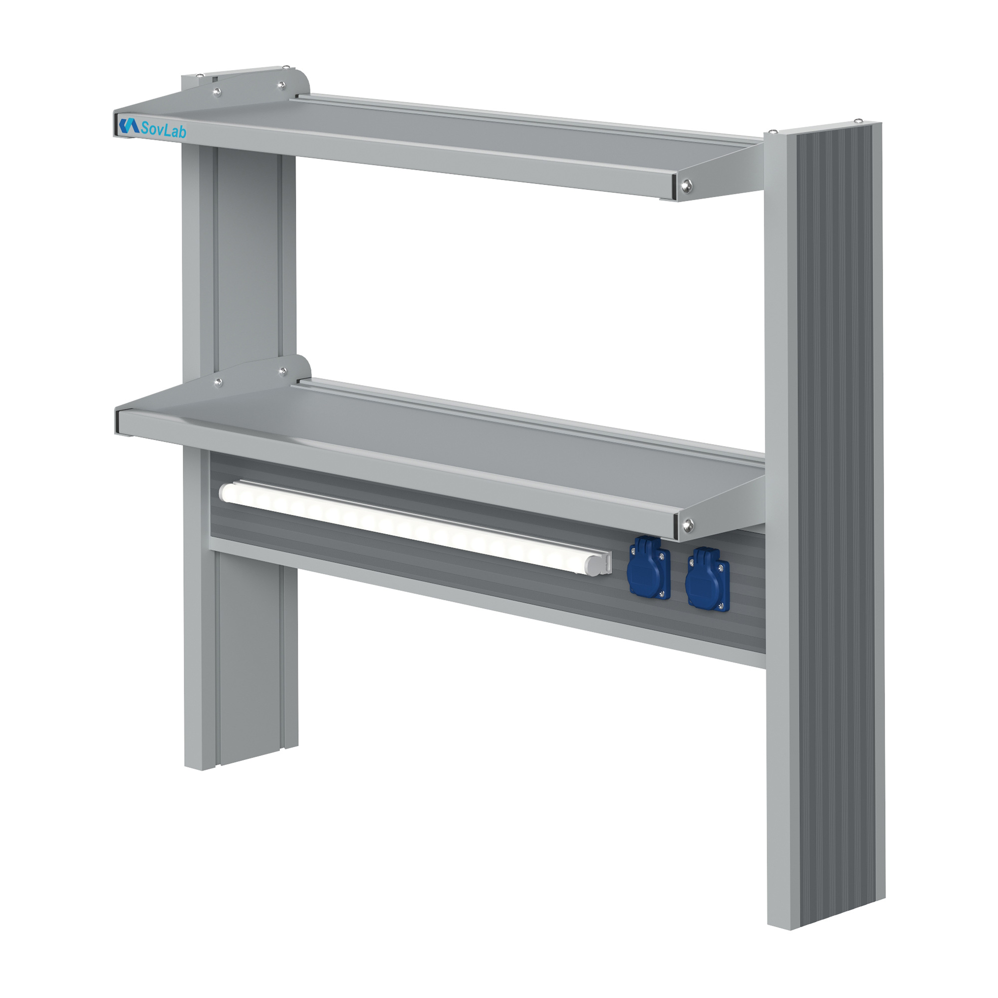Технологический пристенный низкий стеллаж Mod. 900 ТСПн — это специализированное лабораторное оборудование, устанавливаемое на рабочую поверхность пристенных лабораторных столов и предназначенное для размещения лабораторной посуды, расходных материалов, инструментов, приборов и другого лабораторного оборудования. Модель оснащена двумя полками, блоком брызгозащищенных розеток и светодиодным светильником для местного освещения рабочей зоны.