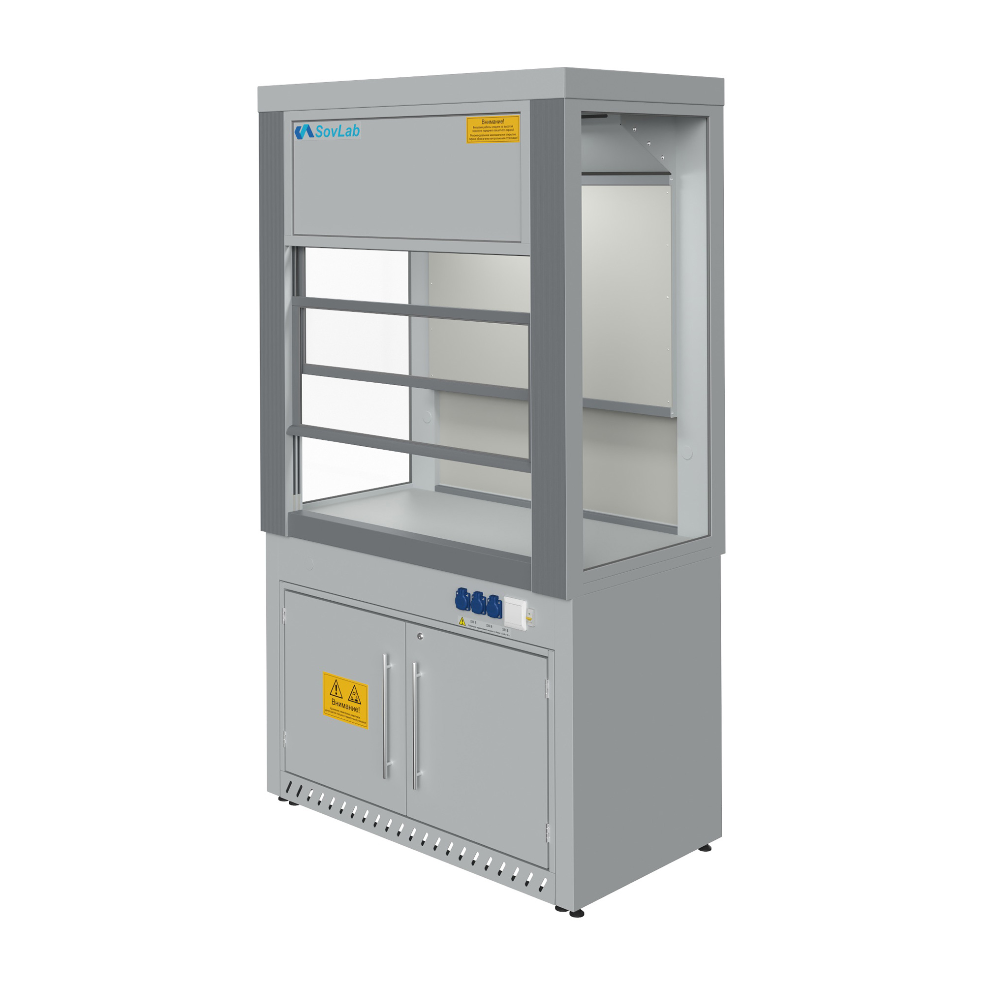 - Функциональный дизайн — шкаф подходит для установки лабораторных приборов различного типа и размера, облегчая организацию рабочего пространства.