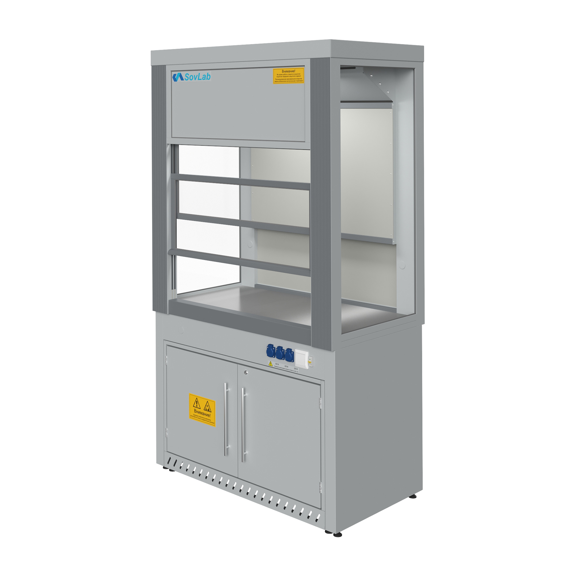 - Функциональный дизайн — шкаф подходит для установки лабораторных приборов и реактивов различного типа и размера.