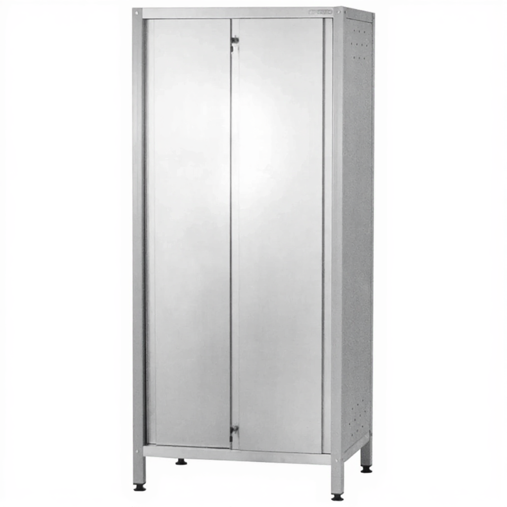 - Вместительность и оптимальные габариты — высота 1800 мм и ширина 1000 мм делают шкаф высоким и широким, что позволяет хранить большое количество кухонной утвари, продуктов в упаковке, инвентаря или посуды. Глубина 500 мм является стандартной для профессиональной кухонной мебели и обеспечивает удобный доступ к содержимому.