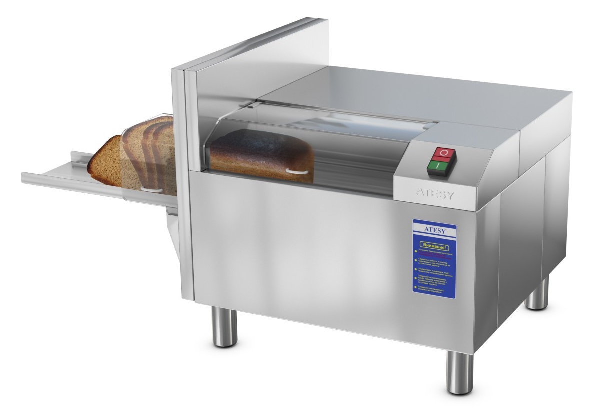 Одинаковая толщина ломтиков при нарезке обеспечена надежным механизмом подачи хлеба.