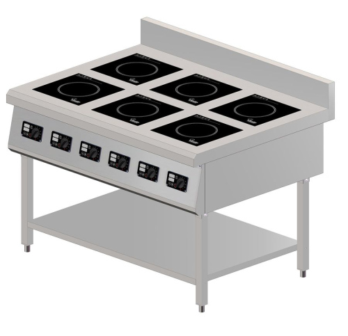 Плита индукционная VIATTO VA-IC3506 установлена на открытой подставке.