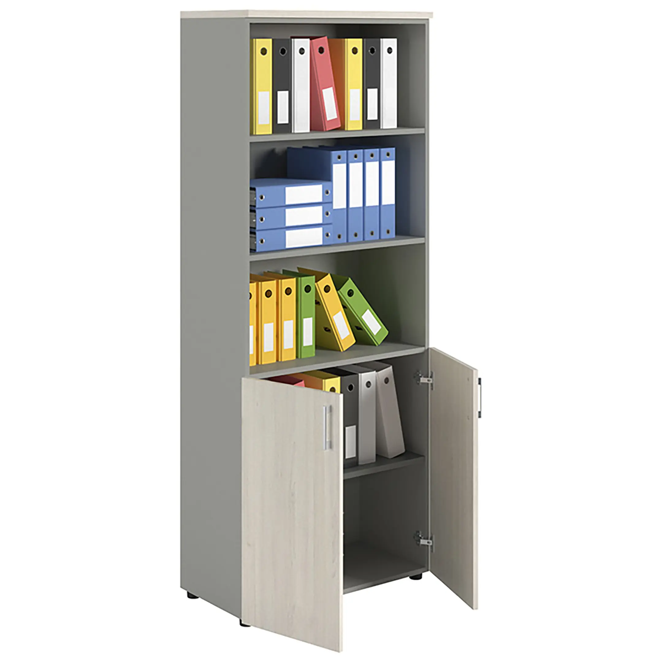 Шкаф NW 2080/2 полузакрытый белое дерево/серый предназначен для хранения.