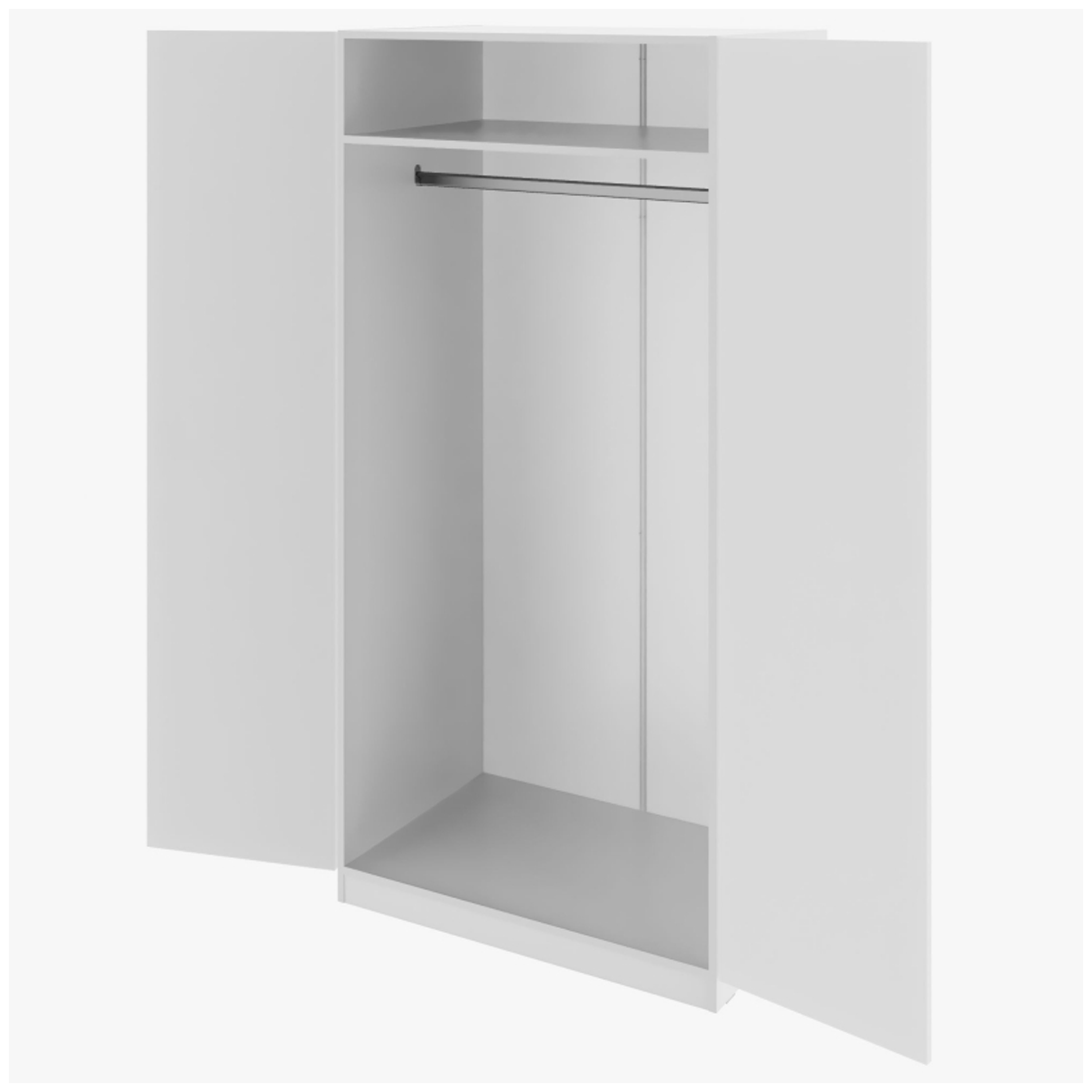 • двухстворчатая конструкция с полкой для головных уборов и перекладиной для вешалок;