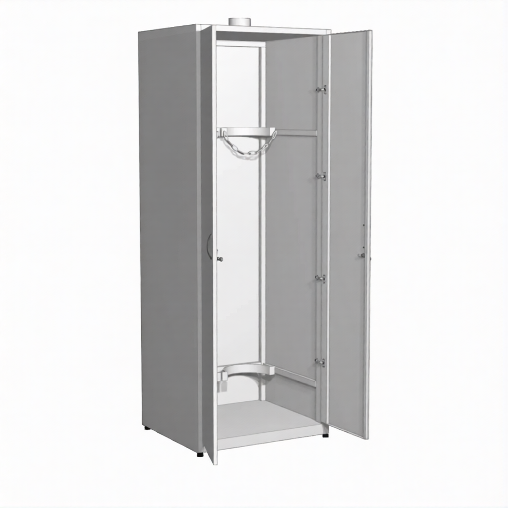 - Универсальная вместимость для парного хранения — шкаф идеально подходит для хранения двух стандартных баллонов, что является распространенной потребностью (например, кислород + азот, горючий газ + кислород). Его компактные габариты позволяют разместить его даже в ограниченном пространстве подсобных помещений.