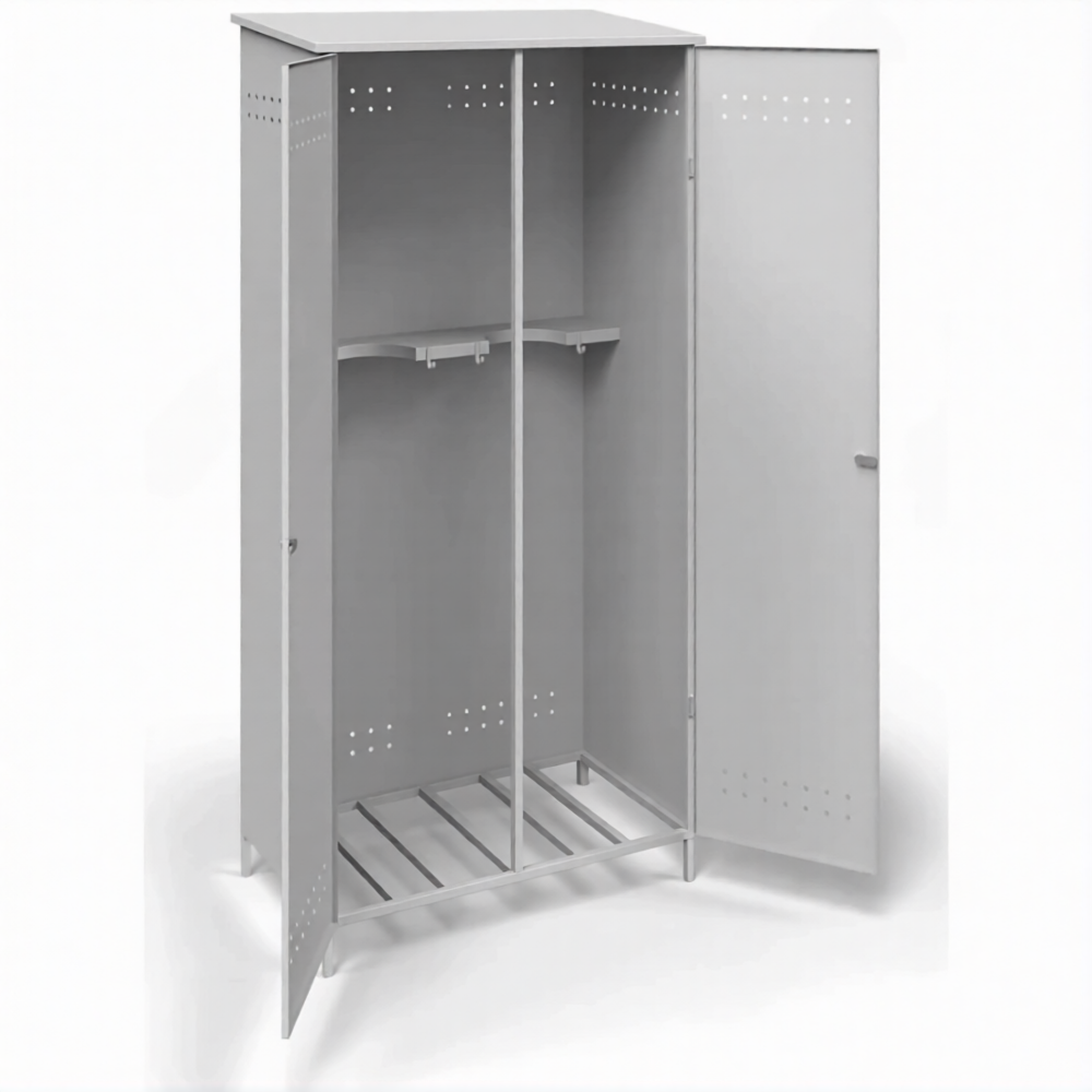 - Оптимальная вместимость для основных операций — шкаф рассчитан на хранение двух газовых баллонов, что является базовой потребностью для множества операций: газовая сварка и резка (баллон с горючим газом + кислород), работы с газовым инструментом или хранение резервных емкостей. Он обеспечивает парное размещение, занимая при этом минимум полезной площади в цеху, гараже или техническом помещении.