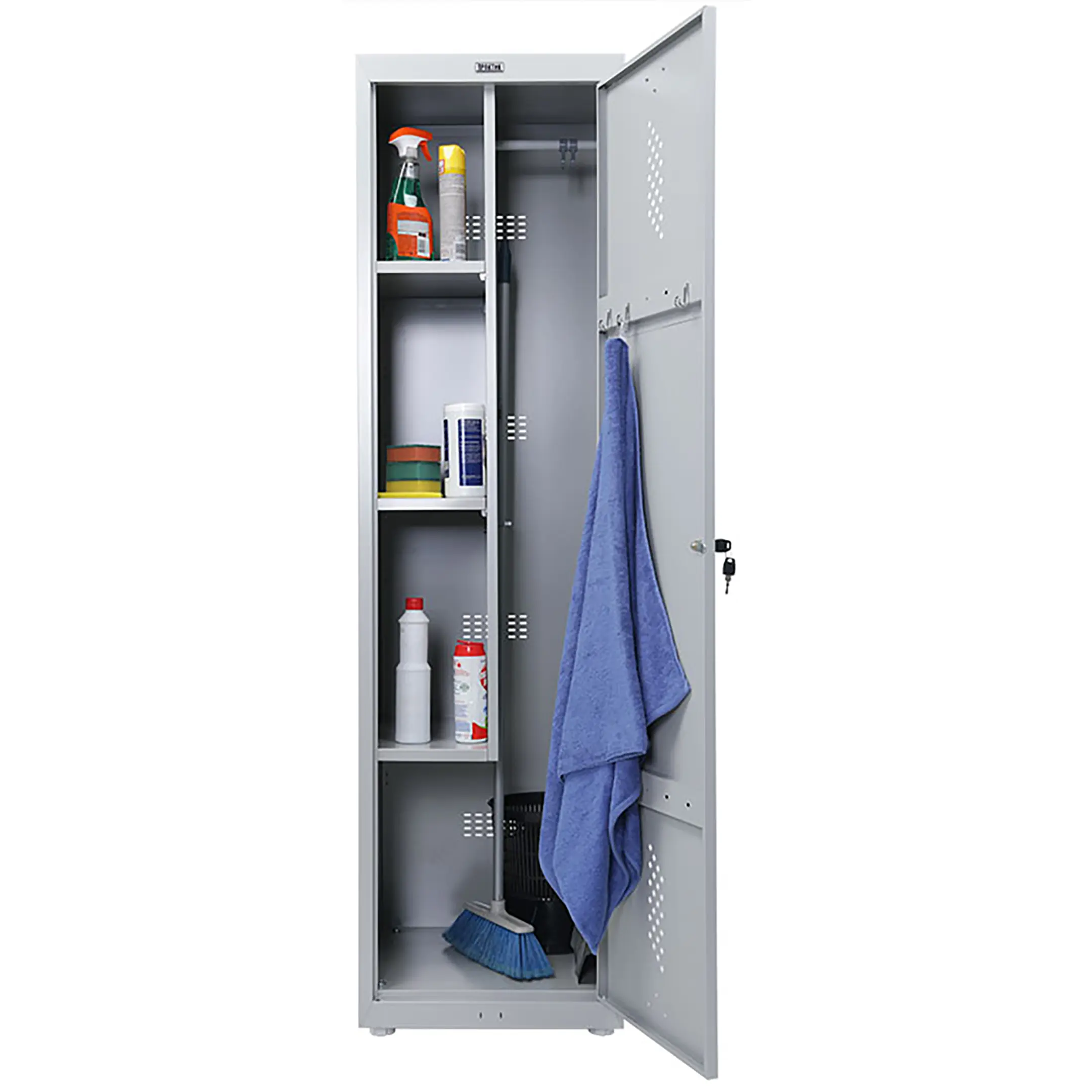 Идеально подходит для хранения рабочей одежды и хоз. инвентаря.